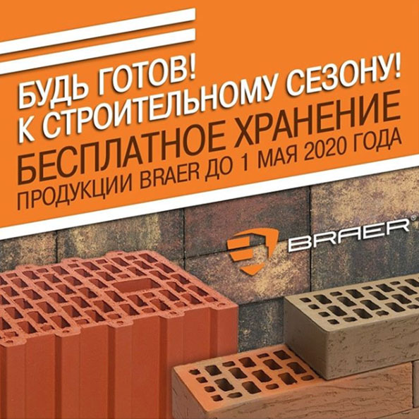 До 30 апреля 2020 года действует акция на бесплатное зимнее хранение облицовочного кирпича, брусчатки, бордюров и керамических блоков. Покупая стройматериалы «Браер» сейчас, вы экономите деньги на ежегодном постновогоднем повышении цен. Покупайте сейчас, а забирайте весной — к началу строительного сезона!